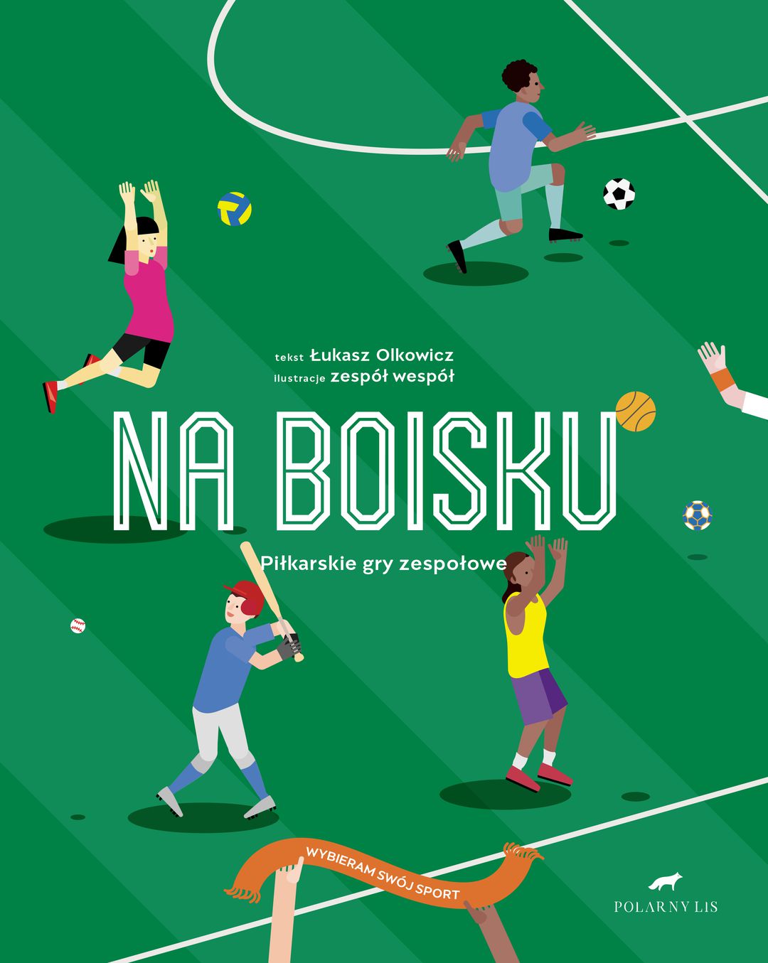 Sport jest twoją pasją? Jesteś kibicem, który nie ominie żadnego meczu, żadnej relacji z olimpiady? A może marzysz o tym, żeby zacząć uprawiać sport, ale nie wiesz, jaką dyscyplinę wybrać? Niezależnie od tego, do której z opisywanych grup należysz, musisz koniecznie przeczytać Na boisku – nowoczesną, bogato ilustrowaną książkę opowiadającą o sportach piłkarskich. Będzie w niej oczywiście mowa o futbolu, ale nie tylko. Znajdą się tam również informacje o siatkówce, koszykówce, piłce ręcznej i baseballu. Czytelnik pozna, z nieznanej dotąd strony, wybitnych zawodników każdej z dyscyplin. Przeczyta rozmowę z jednym z najlepszych polskich siatkarzy Łukaszem Kadziewiczem. Dowie się, jakie trzeba mieć predyspozycje, żeby uprawiać dany sport i jaki sprzęt jest do tego potrzebny. Na boisku to pierwszy tom serii Wybierz Swój Sport. Autorem całej serii jest znany dziennikarz sportowy Łukasz Olkowicz. Projekt graficzny opracowują nagradzani graficy ze studia Zespół Wespół.