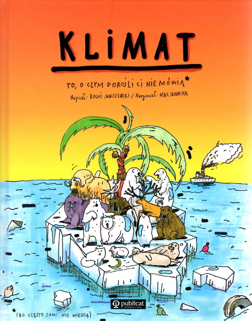 Książka Bogusia Janiszewskiego z ilustracjami Maxa Skorwidera z serii „To, o czym dorośli Ci nie mówią” porusza zagadnienia związane z kryzysem klimatycznym. Opowieść rozpoczyna się od objaśnienia, skąd się wzięło życie i czego życie potrzebuje do życia. Dowiadujemy się, skąd się bierze tlen, a skąd dwutlenek węgla; co to jest atmosfera, co się aktualnie z nią dzieje oraz czy człowiek zawsze tak mieszał w naturze. Poznajemy sposoby, w jaki pozyskuje się energię (węgiel, ropa), oraz skutki zwiększenia poziomu dwutlenku węgla w atmosferze. Przeczytamy o nowych pomysłach na produkcję energii i o tym, które z nich dają efekty. Sprawdzimy także, co z kryzysem robią państwa i organizacje międzynarodowe, a co może zrobić każdy z nas. [empik.com]