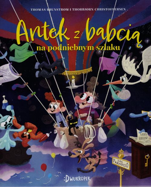 Zbliżają się urodziny Antka, ale chłopiec trochę się martwi. Z prognozy pogody wynika, że tego dnia ma padać, co oznacza, że trzeba będzie odwołać zaplanowane wielkie przyjęcie w ogrodzie. Antek próbuje zadbać, by wszystkie pająki zostały zostawione w spokoju, by nie sprowokować deszczu. Babcia jednak tłumaczy mu, że to tylko przesąd. A potem pokazuje mu balon na ogrzane powietrze, którego jest szczęśliwą posiadaczką. Mogą sami wykonać to zadanie na podniebnym szlaku. [nota wydawcy]